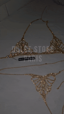 Emeld fel a csillogást egy olyan szettel, ami ugyanolyan káprázatos, mint te magad. Ez a remekmű strasszokkal díszített, amelyek minden mozdulattal megvilágítják a fényt, finom láncdíszítéssel párosítva, ultra-csábító hatást keltve. Úgy tervezték, hogy ragyogj, csillogj és ellopd a show-t – mert semmi sem csilloghat jobban, mint te.